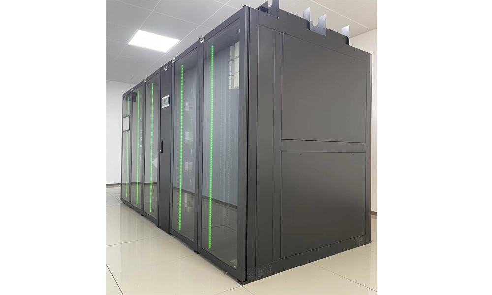江蘇省鹽城天森機(jī)器人項(xiàng)目信息化建設(shè)采用微模塊機(jī)房建設(shè),為保證系統(tǒng)的穩(wěn)定供電,避免停電等突發(fā)事件對(duì)業(yè)務(wù)的影響,引入U(xiǎn)PS不間斷電源系統(tǒng)是至關(guān)重要的。信息機(jī)房采用安德力士GLV單排微模塊系統(tǒng)1套,系統(tǒng)使用行間空調(diào)1臺(tái)。單排微模塊機(jī)柜的制冷模塊,采用靠近熱源的列間空調(diào),和標(biāo)準(zhǔn)機(jī)柜一體化設(shè)計(jì)。柜體采用全封閉設(shè)計(jì),冷熱通道分離;空調(diào)采用后進(jìn)風(fēng),前出風(fēng)90°左回風(fēng)的方式,送風(fēng)距離短、循環(huán)風(fēng)阻小,大大提高制冷效率,實(shí)現(xiàn)高密度制冷。